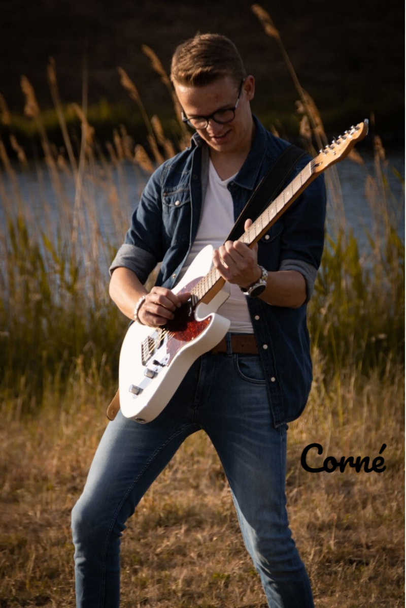 Onze Corne. Die kunnen we wel de oprichter van deze bende noemen. Corne is van alle markten thuis. Vroeger speelde hij goed piano, maar is inmiddels overgestapt op een instrument met 6 snaren. De gitaar. Corne is een echte entertainer. Door zijn typische bewegingen en vetkuif kunnen we hem eigenlijk niet onderscheiden van Elvis.